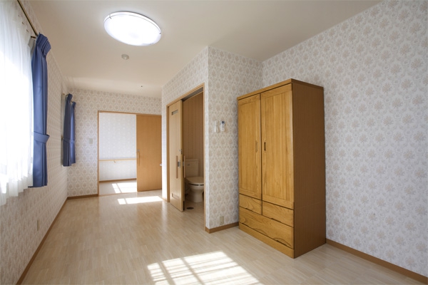 ご夫婦や親子・兄弟でお使いいただける二人用居室です。各室に水洗トイレ・洗面・エアコン・洋服ダンス・火災報知機を完備しています。